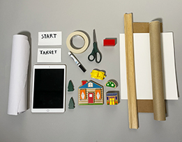 • Objects for building the town and obstacles, such as toy trees, cars, and houses; blocks and cardboard boxes for buildings and walls; pillows for bushes; cardboard tubes for trees and utility poles; etc.