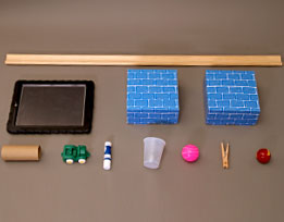 6. Let children construct an obstacle that includes several items, and have them place it directly in front of the ramp.